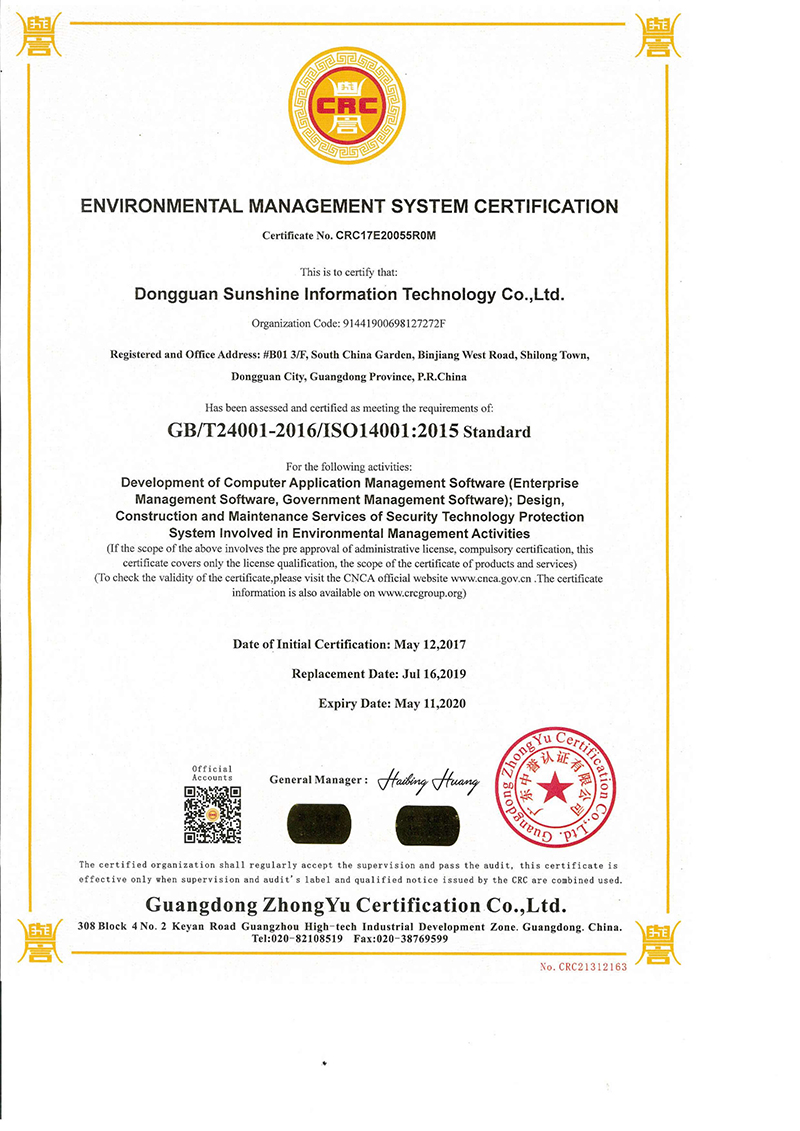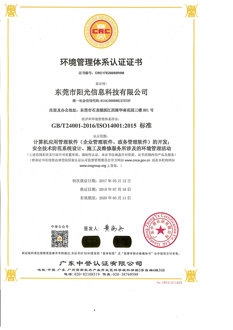 通过ISO14001:2015环境管理体系认定